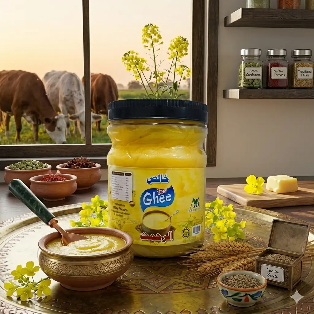 Cow Desi Ghee is a traditional and nutritious cooking fat prepared from pure cow milk. Known for its rich aroma, golden color, and authentic taste, desi ghee has been a staple in South Asian kitchens for generations.
